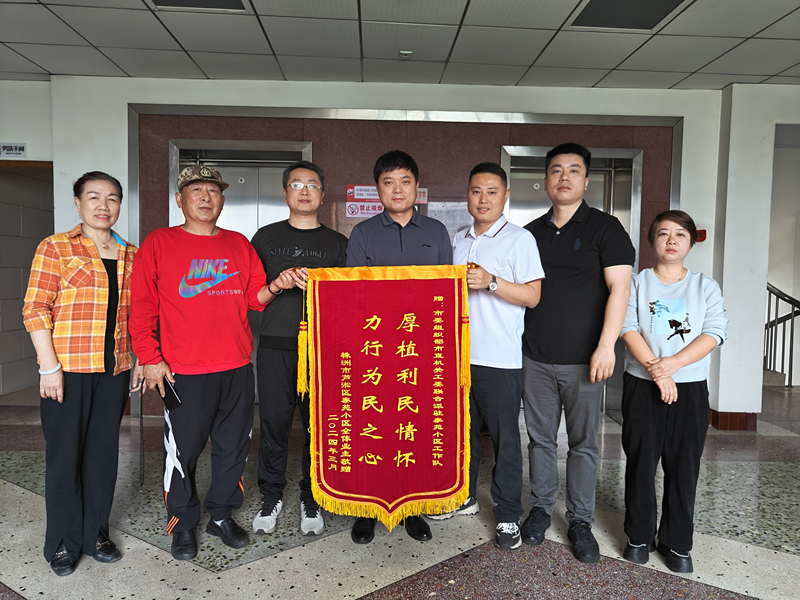 近日,在市政府大楼,芦淞区贺家土街道泰苑小区居民向市审计局等3家单位组成的党员联合工作队赠送锦旗,以感谢工作队一年来的志愿服务和显著成效。