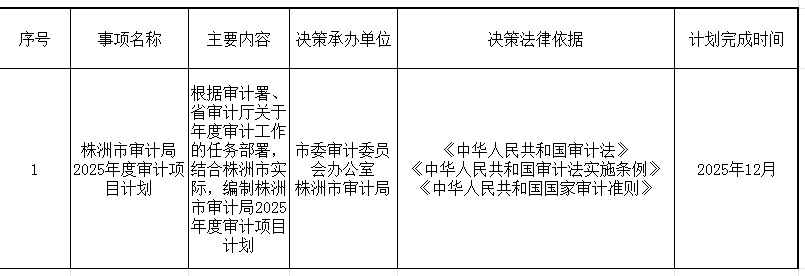 株洲市审计局2025年度重大行政决策事项目录