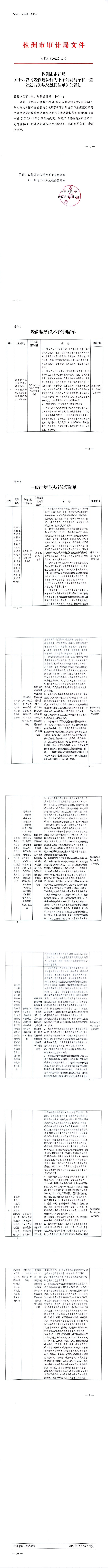 株洲市审计局关于印发《轻微违法行为不予处罚清单和一般违法行为从轻处罚清单》的通知